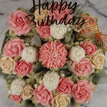 A mixed platter of 6 regular and 9 mini sized cupcakes - 15 cupcakes in total.
