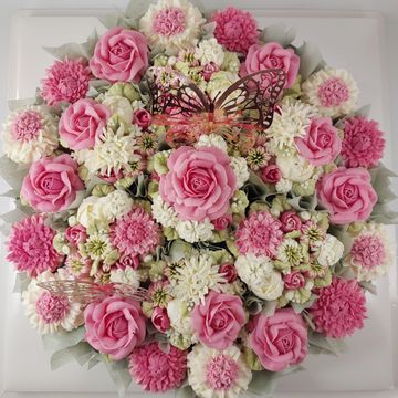 Supplied on a cake board and in a lovely standard white cake box with window.